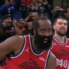 搞笑登,伦纳德绝杀成功时哈登露出鬼魅笑容